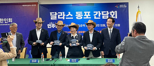 ÇÑÀÎȸ ÃøÀº ÀÇ¿ø´Ü¿¡ ´Þ¶ó½º¸¦ »ó¡ÇÏ´Â ¸ðÀÚ¸¦ ¼±¹°ÇßÀ¸¸ç, Âü¼®ÀÚµéÀº °¨»ç Àλ縦 ÀüÇÏ¸ç ±â³äÃÔ¿µÀ¸·Î °£´ãȸ¸¦ ¸¶¹«¸®Çß´Ù.